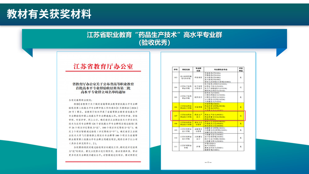 江苏省职业教育“药品生产技术”高水平专业群 (验收优秀)